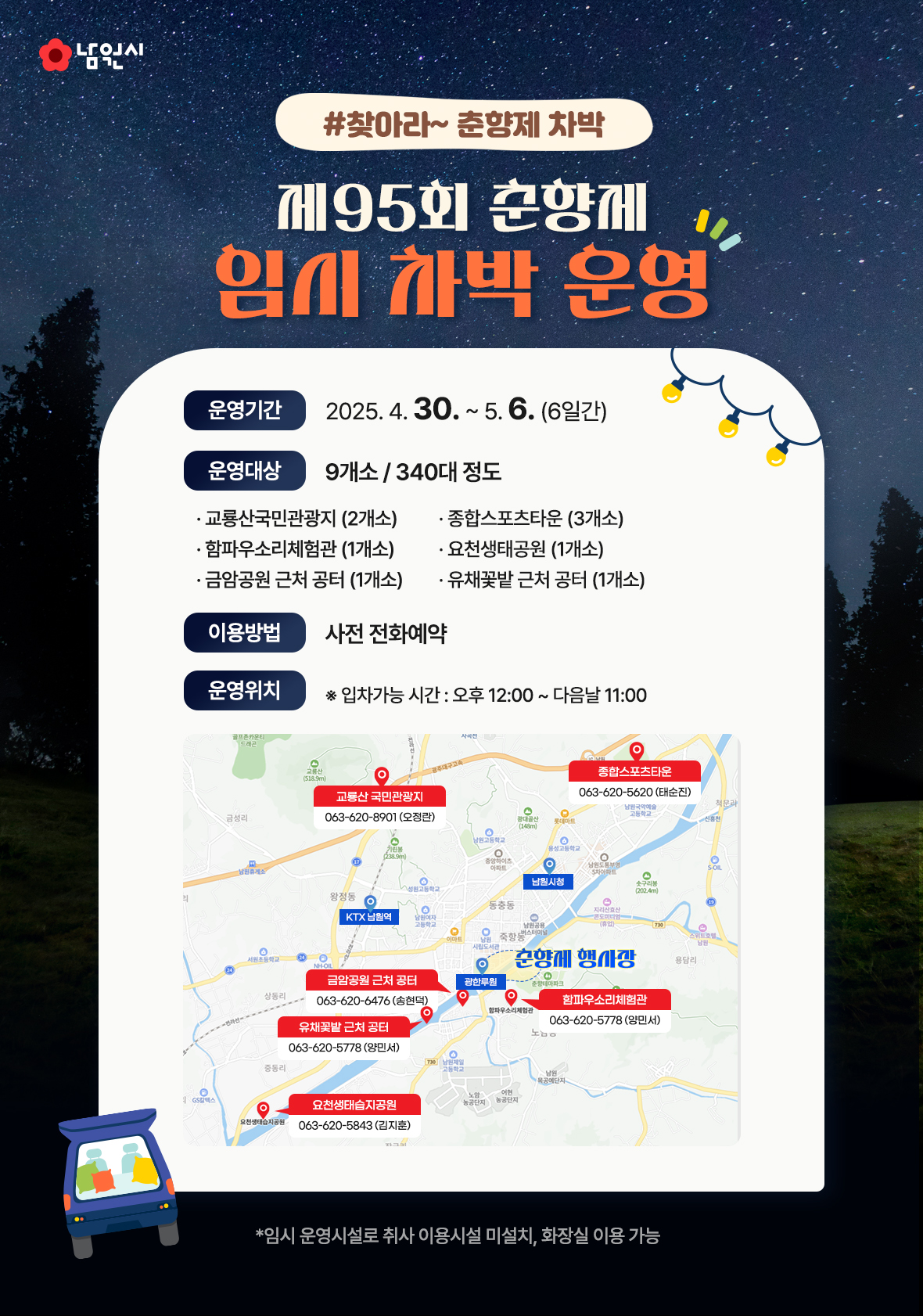 남원은 대중교통과 차량 접근성이 뛰어나며, 축제 기간엔 셔틀버스도 운영됩니다. 숙박은 미리 예약하시는 걸 추천드립니다.